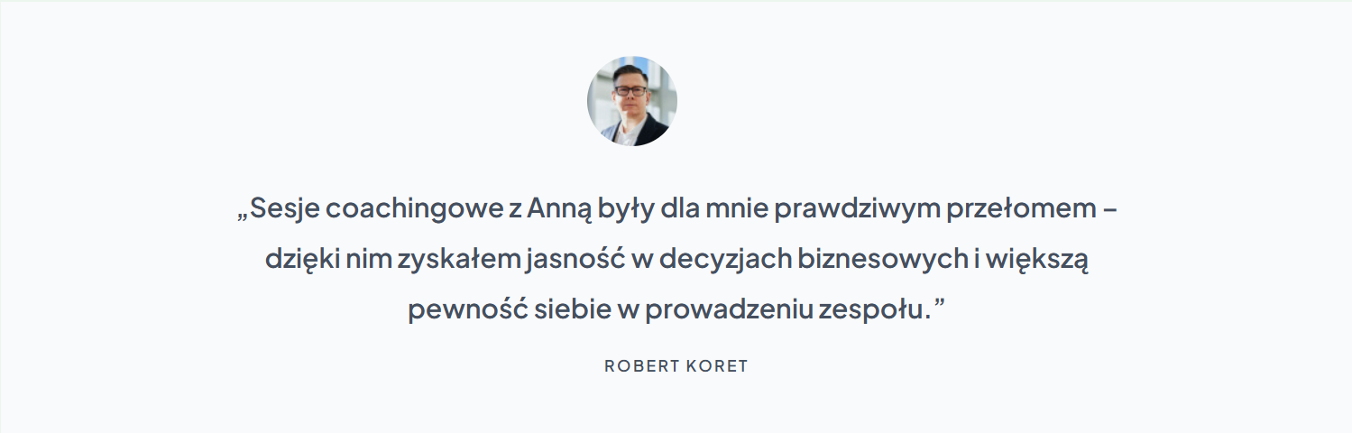 Wspieram w rozwijaniu autentycznego przywództwa opartego na świadomości, empatii i pewności siebie. Pomagam budować postawę lidera, który inspiruje innych, zachowując przy tym wewnętrzny spokój i równowagę.